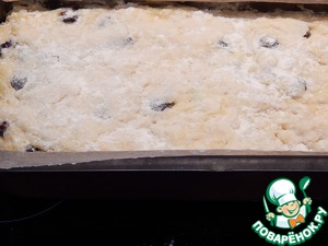 Выложить в хорошо смазанную прямоугольную форму. У меня из этого кол-ва ингредиентов получилось заполнить 2 формы: 30х11 и 21х9 см.