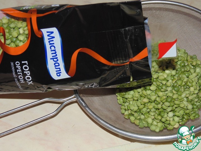 Зеленый колотый горох "Орегон" ТМ Мистраль промыть, залить холодной водой, поставить на огонь, довести до кипения, убавить газ и варить на медленном огне.