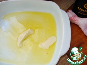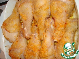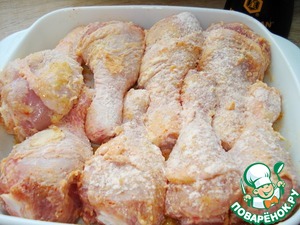 Выложите куриные ножки в форму для запекания, и переверните их.
