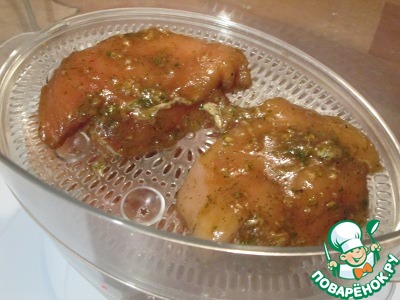 Выкладываем филе, хорошо перемешиваем и оставляем на 1 час