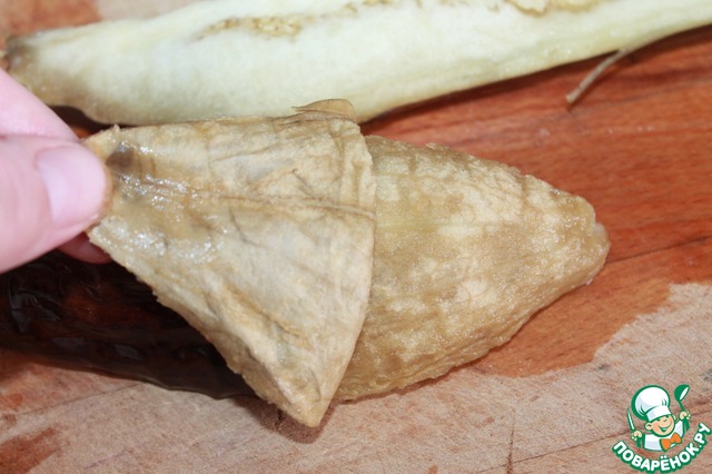 Переворачиваем шкуркой вверх и снимаем её, делается это очень просто.