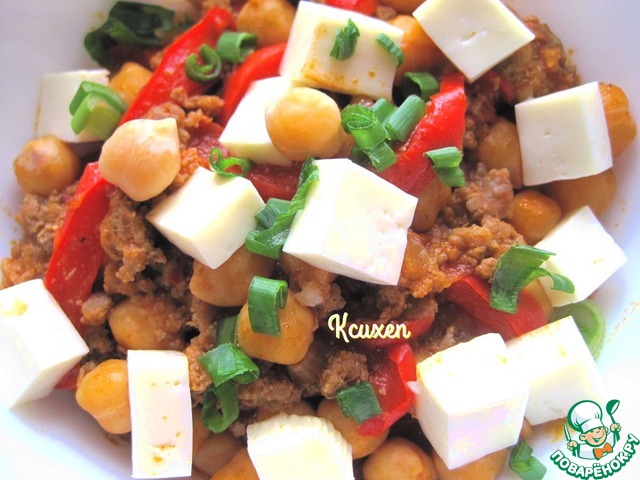 Нут, мясной фарш, овощи и фета-отличное сочетание для полноценного блюда... А зира придаёт блюду аромат Востока!