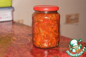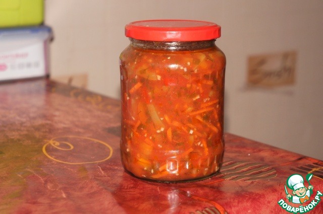 Это универсальная и очень вкусная заготовка. Готовится легко, стерилизации не требует. Я использую ее для приготовления пиццы, различного мяса, как заправку в суп и как закуску или салат на стол, когда вдруг требуется что-то поставить, а времени делать салат нет. Она постоянно меня выручает.