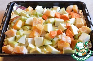 - Масло оливковое (для поливки овощей при запекании) — 20 мл