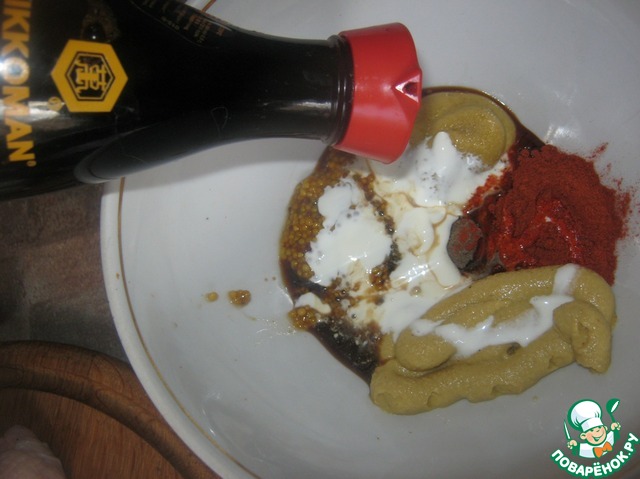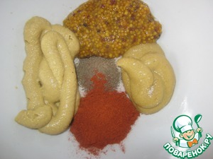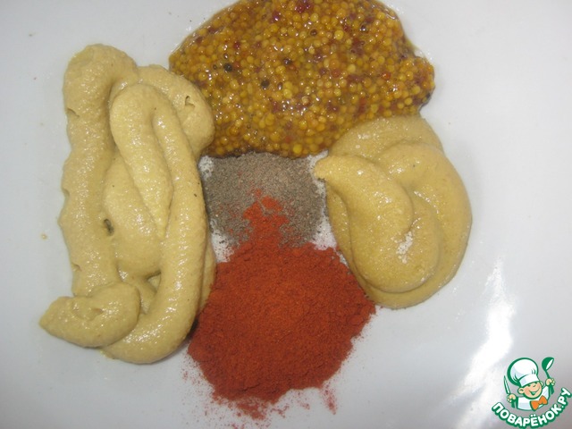 - Горчица (по 1ст.л.горчиц-"Французская","С хреном " и "Домашняя") — 3 ст. л.