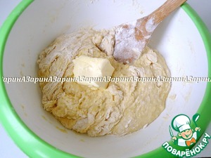 Хорошо вымесив тесто, добавить в него в три приема мягкое сливочное масло.