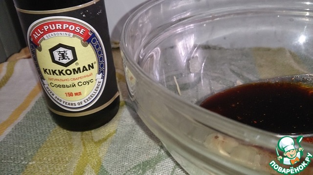 В чашке смешать соевый соус, сок лимона, перец, паприку. Добавить лук натерев на терке, и чеснок (мелко нарезать ножом).