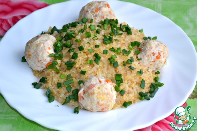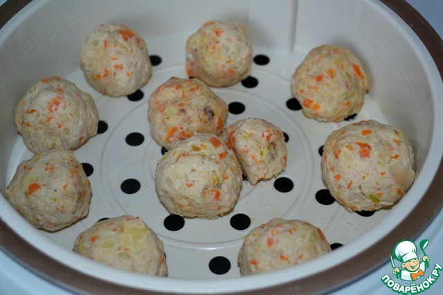 перемешать. Затем, окуная руки в воду, сформировать шарики и выложить их в чашу пароварки. -