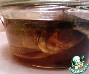 Заливаем филе сельди маринадом и в холодильник на ночь.