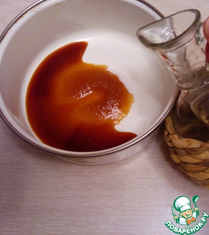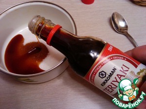 Для маринада в сахар вливаем соус "Терияки" Киккоман