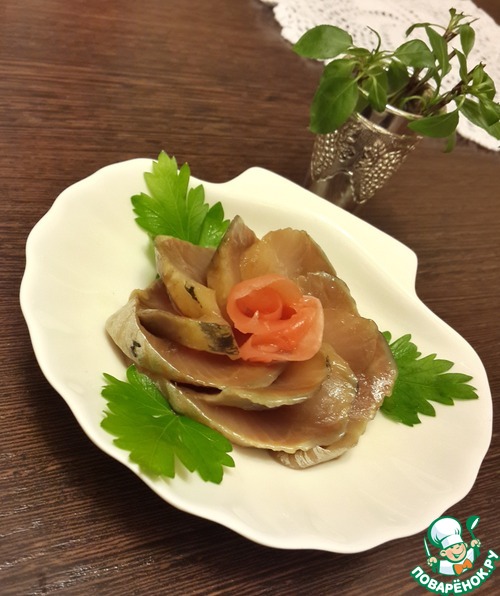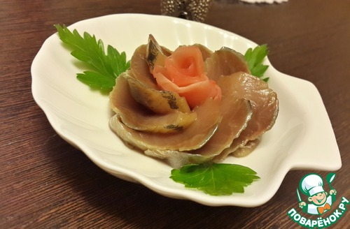 Замаринованную селедку нарезаем на кусочки, сдабриваем растительным маслом слегка, украшаем на свой вкус!!!