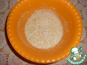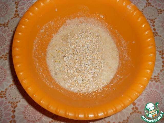 В теплом молоке растворите сахар, дрожжи, добавьте 2 ст. л. муки, перемешайте и поставьте опару в теплое место на 15 минут, за это время опара поднимется. Добавьте к опаре овсяные отруби, соль.