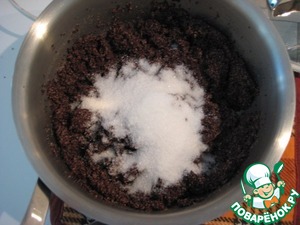 • Приготовить начинку: мак залить кипятком на 1 см выше. Варить на маленьком огне до выкипания воды. Выключить огонь и оставить мак на 15 минут под крышкой. Пробить мак погружным блендером до побеления и пушистости. Добавить щепотку соли и сахар.