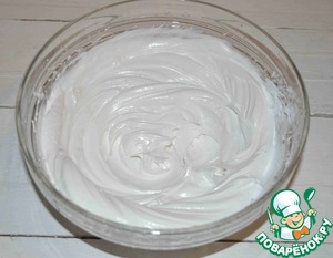 Для швейцарской меренги нам понадобится: 2 белка + 70 грамм сахара! Прогреваем на паровой бане при постоянном помешивании до полного растворения массы и не превышаем температуру 60 градусов, чтобы белки не свернулись. Затем взбиваем миксером в течение 5 минут до получения гладкой и блестящей меренги.