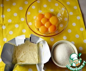 Яичные желтки растираем с оставшимся сахаром и размягченным сливочным маслом. Получаем такую себе масляную эмульсию!