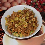 зеленые оливки (мы их просто не едим) заменила на маслины,добавила смесь перцев,т.к. нам было пресновато