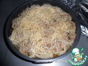 • За 10-15 минут до окончания приготовления вынимаем противень, снимаем фольгу и посыпаем блюдо оставшимся сыром. Ставим в духовку.