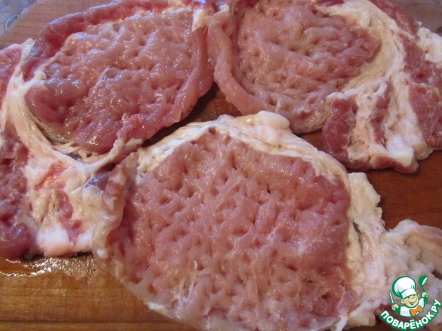 Охлажденный свиной антрекот промыть,