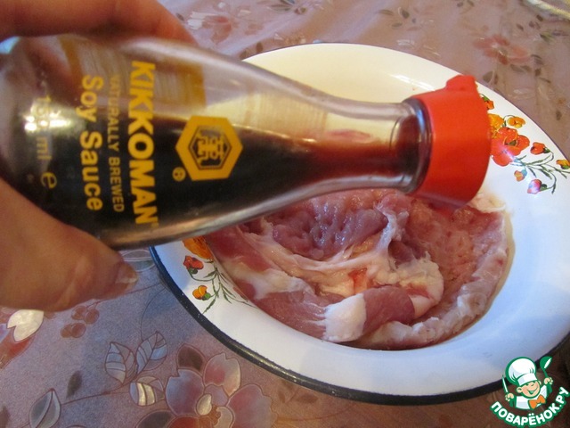 Затем обильно полить соевым соусом Киккоман,