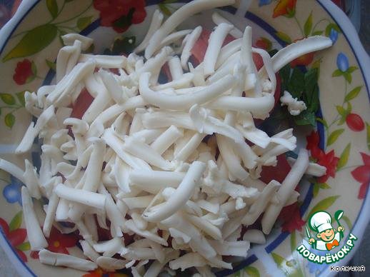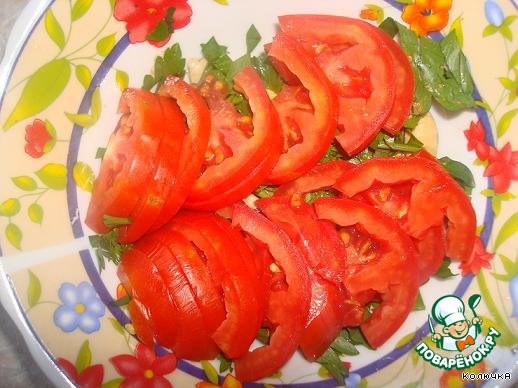 Потом помидорки нарезала полу колечками.