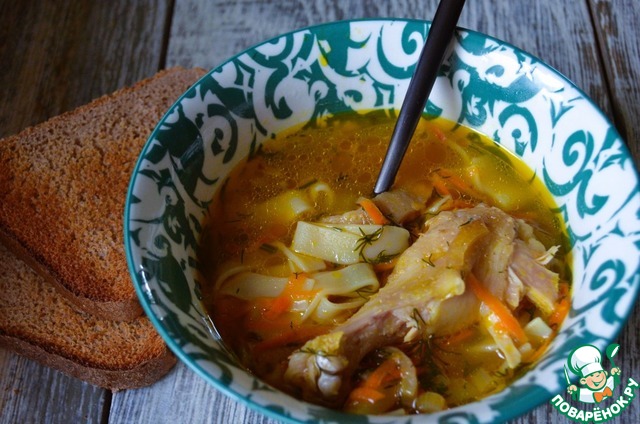 Рецепт «Суп куриный с домашней лапшой "Деревенский"»: