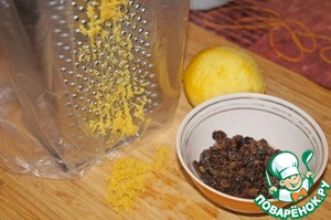 Тем временем, с лимона стереть цедру. Изюм перебрать, промыть теплой водой, обсушить и залить ромом.