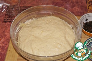 Затем добавить изюм с ромом и цукаты, тщательно вымесить тесто. Возможно придется подсыпать немного муки, тесто должно остаться довольно мягким и в то же время не расплываться на противне, держать форму.
