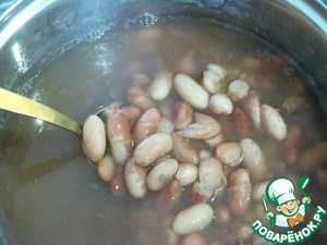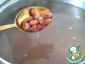На ночь замочить фасоль, я брала красную. Перед готовкой промыть и поставить вариться – на 40 мин. -1час, у меня она сварилась минут за 40.