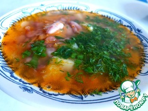 Суп готов, подаем к столу! Посыпаем свежей рубленой зеленью - зеленым луком, укропом, петрушкой.