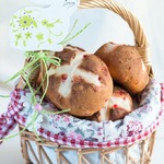 Эти сладкие нежные булочки (Hot cross buns) готовят на Пасху в Англии и Америке. Иногда в них добавляют шоколадную крошку или орехи. В данном рецепте они пекутся с добавлением свежего яблока, которое делает их очень легкими и воздушными.