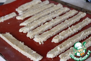 Выпекать при 180 градусах 15 минут до золотистого цвета. По прошествии этого времени я палочки перевернула и выпекала еще пару минут с другой стороны. Так что они получились у меня золотистыми с обеих сторон!