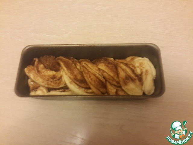 • Укладываем в смазанную маслом форму для кекса и даем постоять около 30 минут для расстойки. Выпекаем при 160 градусах около 25 минут (ориентируйтесь по своей духовке)