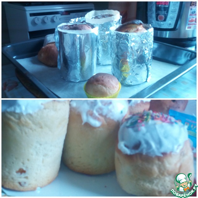 Эти куличи впервые я испекла в прошлом году, хотя угощали меня ими несколько лет подряд. Очень понравился этот рецепт, готовить по нему было легко и непринуждённо. Сейчас советую всем. Куличи очень вкусные, так как по этому рецепту готовила очень давно бабушка моей подруги, а как известно у бабушек не вкусных куличей не бывает!