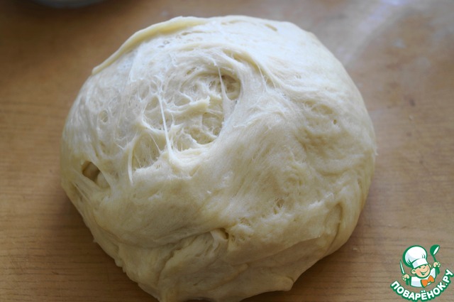 • Вот так выглядит готовое тесто. Оно мягкое, воздушное и послушное, с ним легко работать.
