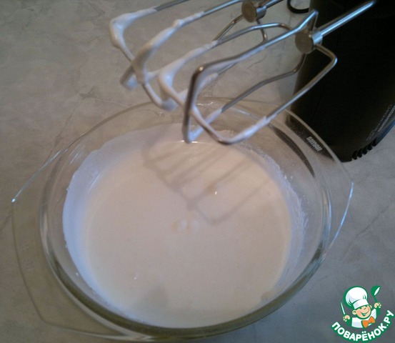 Пока веночек остывает, приготовим белковую глазурь. Я делала ее при помощи миксера.