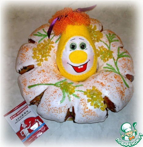 Остывший веночек покрыть глазурью, украсить по своему усмотрению.