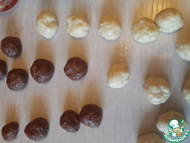 Теперь формовка - первый вариант. Катаем из теста маленькие шарики с перепелиное яйцо