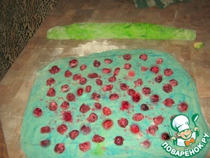 Голубой колобок раскатала и насыпала на него вишню