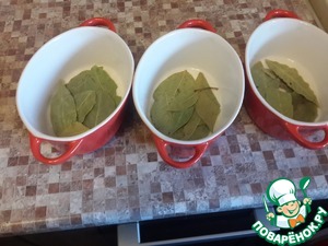 Порционные формочки смазываем маслом укладываем на дно лавровые листики