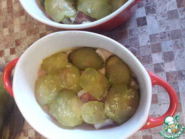 За это время чистим картофель и режем тонкими кружочками огурцы -
