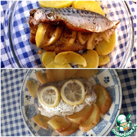 Рецепт быстрого приготовления вкуснейшей рыбы-скумбрии!! Ароматная и пикантная, с гарниром из припущенных яблок-рекомендую всем любителям этой замечательной рыбы!