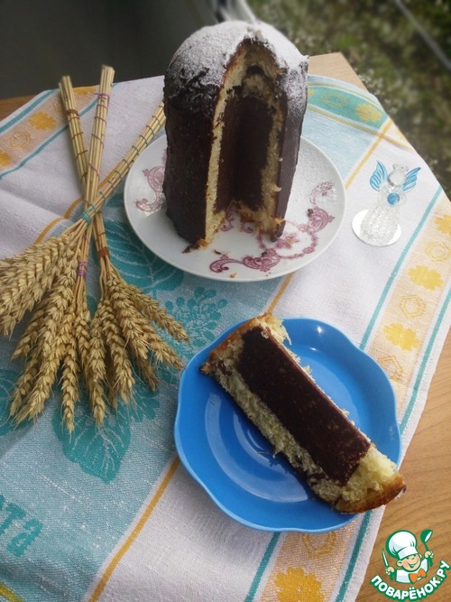 Посыпаем сверху сахарной пудрой и наслаждаемся. Получается мега шоколадно и сладко, поэтому вкуснее всего с несладким кофе или чаем. Кстати таким же образом можно облагораживать куличи, если их есть в натуральном виде уже никто не хочет :)