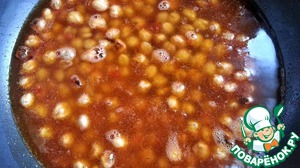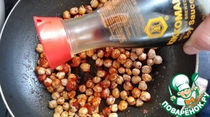 В отдельной сковороде растоптть слив. масло и обжариваем нут. Затем добавить перцовую пасту, соевый соус.