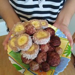 От теста отщипывать небольшой кусочек, сделать лепешку. В центр лепешки положить кусочек банана.