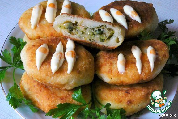 Начинка может быть любая: капуста, яйца с зелeным луком, грибы, печень с луком и т. д.