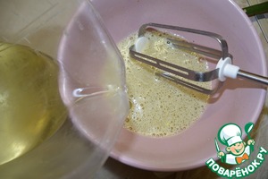 Попробовать на соль, если нужно подсолить. Продолжая взбивать, влить тонкой стройкой растительное масло.