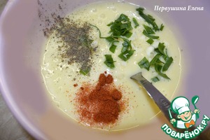 Добавить оставшиеся специи (паприку, хмели-сунели, перец душистый и красный) и размешать. Можно добавить зелень.