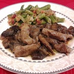 В сковороду налить 1ст. л. масла и хорошо прогреть. Обжарить ломтики свинины на сильном огне, помешивая, около 2 минут.