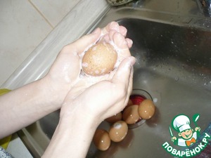 Яйца я мою с мылом, т. к. иногда попадаются не совсем чистые, и могут в этом месте плохо покраситься.