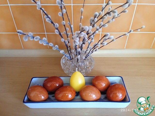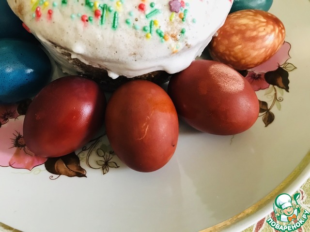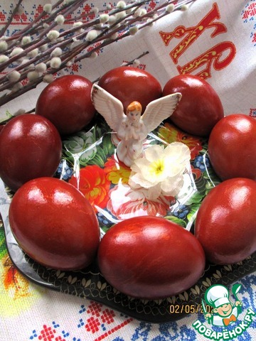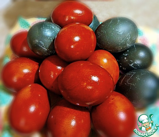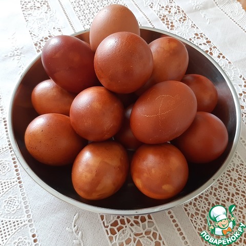 Рецепт «Яйца пасхальные в луковой шелухе "Блестящие"»: